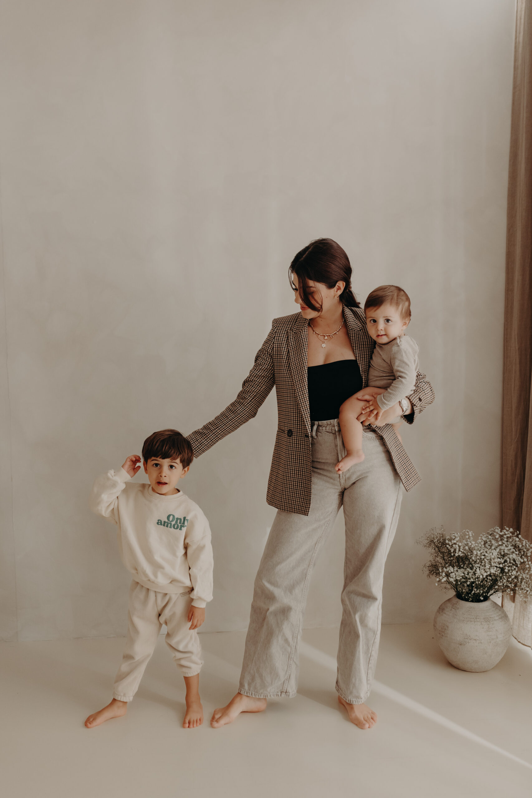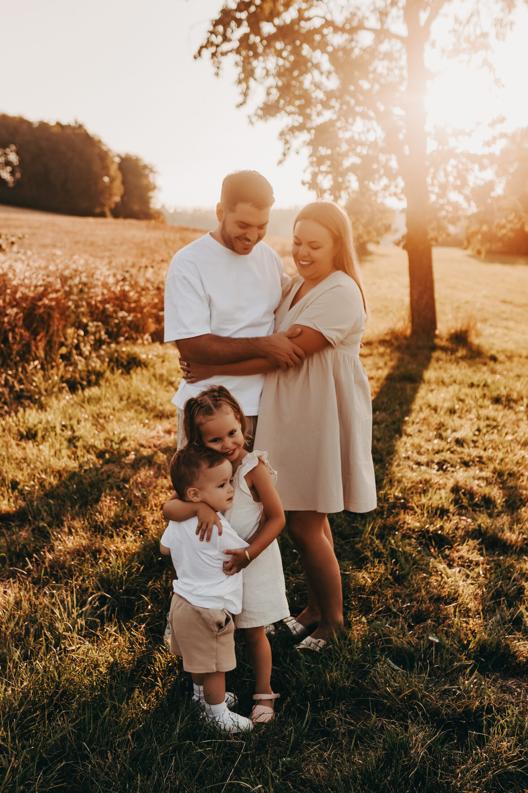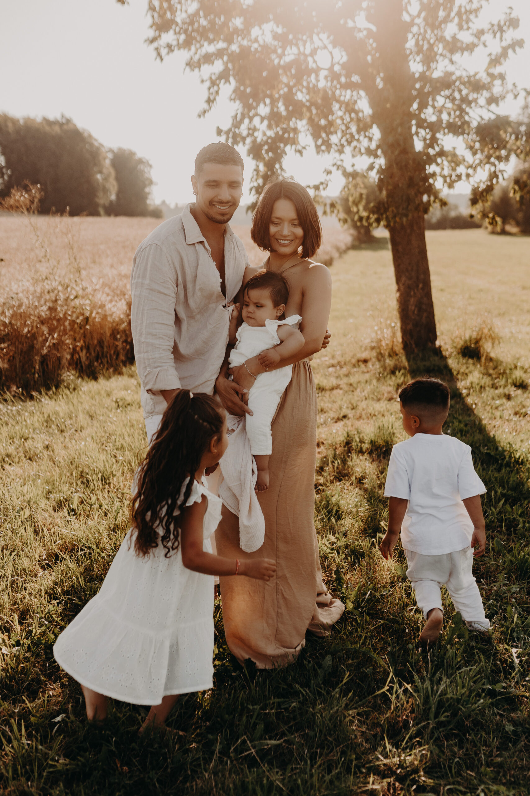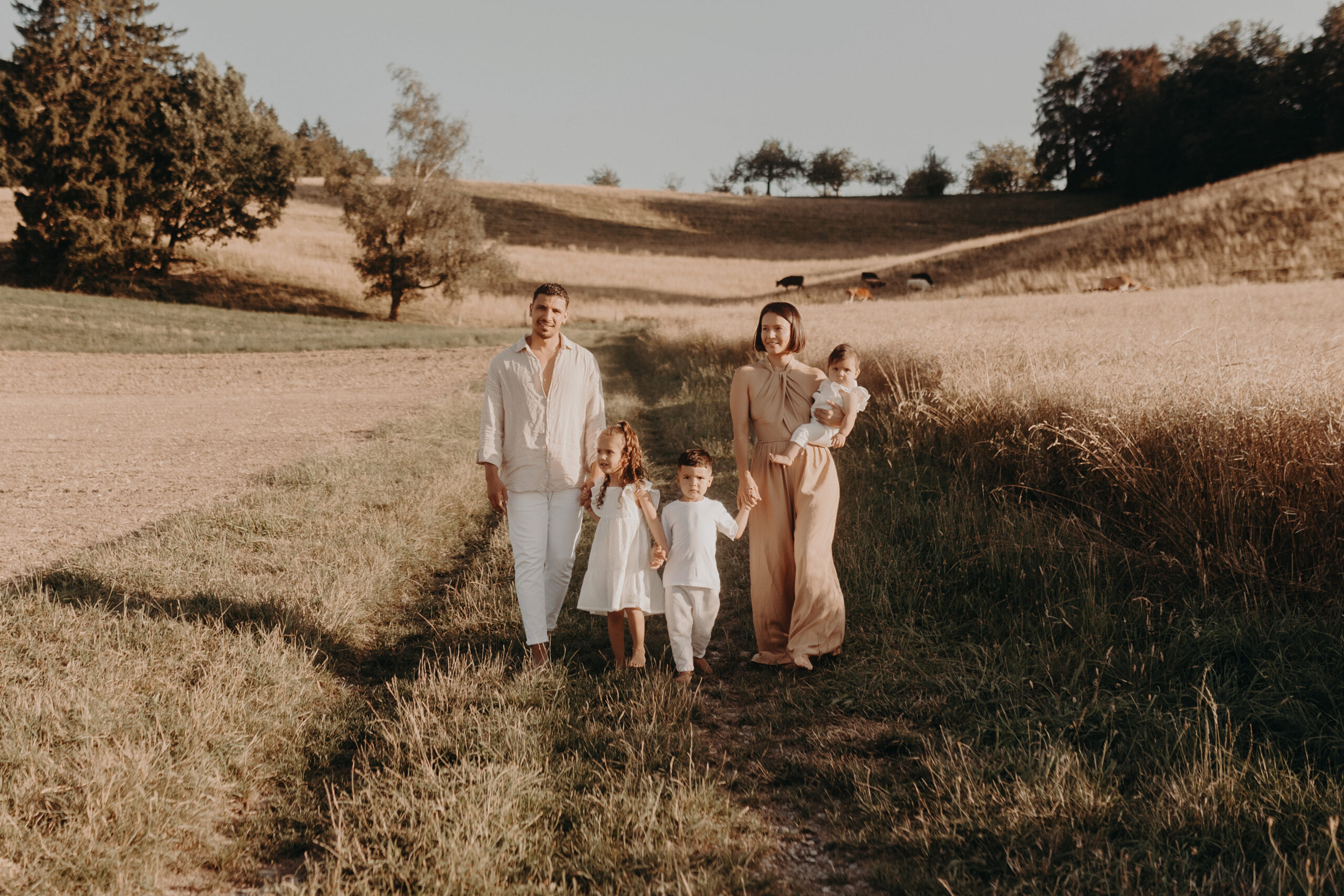 Ich empfehle euch, etwas Einfarbiges in Natur- bzw. Pastelltönen: Weiß, beige, dunkelgrün, grau, braun oder auch schwarz. Nichts allzu Buntes, mit Beschriftung oder Mustern. Damit auf dem Foto die Aufmerksamkeit ganz bei euch liegt und nicht beim T-Shirt oder Kleid. Versucht, alle in der gleichen Farbfamilie zu bleiben, mit einem ähnlichen Stil. Nach erfolgreicher Buchung erhaltet ihr weitere Informationen und auch einen Style Guide, der euch hilft, die richtige Kleidung auszuwählen.